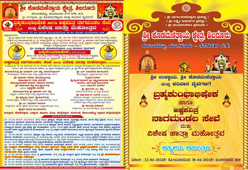 ಎಪ್ರಿಲ್ 22ರಿಂದ 30ರ ತನಕ ಶಿಬರೂರು ಕೊಡಮಣಿತ್ತಾಯ ಕ್ಷೇತ್ರದಲ್ಲಿ ಬ್ರಹ್ಮಕುಂಭಾಭಿಷೇಕ, ನಾಗಮಂಡಲ ಕಾರ್ಯಕ್ರಮಗಳು ಜರಗಲಿದ್ದು 26ರಂದು ಶ್ರೀ ಉಳ್ಳಾಯ ಕೊಡಮಣಿತ್ತಾಯ ದೈವಗಳಿಗೆ ಬ್ರಹ್ಮಕುಂಭಾಭಿಷೇಕವು ಬ್ರಹ್ಮಶ್ರೀ ವೇದವ್ಯಾಸ ತಂತ್ರಿ, ಶಿಬರೂರುರವರ ನೇತೃತ್ವದಲ್ಲಿ ಜರಗಲಿದ್ದು ಅದೇ ದಿನ ರಾತ್ರಿ ಕ್ಷೇತ್ರದ ನಾಗಮಂಡಲ ಸೇವೆ ಜರುಗಲಿದೆ. ಎಪ್ರಿಲ್ 27ರಿಂದ 30ರ ತನಕ ವಿಶೇಷ ಜಾತ್ರಾ ಮಹೋತ್ಸವವು ಜರಗಲಿದ್ದು ಈ ಸಂದರ್ಭದಲ್ಲಿ ಕ್ಷೇತ್ರಕ್ಕೆ ಲಕ್ಷಾಂತರ ಭಕ್ತರು ಪಾಲ್ಗೊಳ್ಳುವ ನಿರೀಕ್ಷೆ ಇದೆ ಎಂದು ಜೀರ್ಣೋದ್ದಾರ ಮತ್ತು ಬ್ರಹ್ಮಕಲಶೋತ್ಸವ ಸಮಿತಿ ಅಧ್ಯಕ್ಷರಾದ ಕೋಂಜಾಲಗುತ್ತು ಪ್ರಭಾಕರ ಎಸ್ ಶೆಟ್ಟಿ ತಿಳಿಸಿದರು.