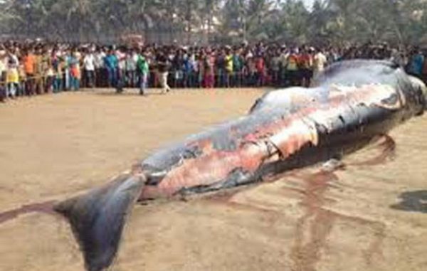 ಉರಾನ್‌ ಸಮೀಪದ ಖರದಂಡ ಎಂಬಲ್ಲಿನ ಸಮುದ್ರ ತೀರದಲ್ಲಿ ಬಂದು ಬಿದ್ದಿದ್ದ ಕೊಳೆತ ತಿಮಿಂಗಿಲವನ್ನು ಕಂಡ ರೋಮಾಂಚಿತರಾದ ಜನರು ಅಧಿಕಾರಿಗಳಿಗೆ ತಿಳಿಸಿದರು.
