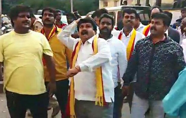 ಬೆಂಗಳೂರು: ಖ್ಯಾತ ತಮಿಳು ನಟ ಇಳಯ ದಳಪತಿ ವಿಜಯ್ ಅಭಿಮಾನಿಗಳು ಕನ್ನಡಿಗನೊಬ್ಬನಿಗೆ ಚಿತ್ರಮಂದಿರದಲ್ಲಿ ಥಳಿಸಿದ ಬಗ್ಗೆ ಆರ್.ಟಿ.ನಗರ ಠಾಣೆಯಲ್ಲಿ ಪ್ರಕರಣ ದಾಖಲಾಗಿದ್ದು, ಘಟನೆಯ ಬಳಿಕ ತಮಿಳು ಚಿತ್ರ ನಿಷೇಧಕ್ಕಾಗಿ ಕರವೇ ಪ್ರತಿಭಟನೆ ನಡೆಸುತ್ತಿದೆ.