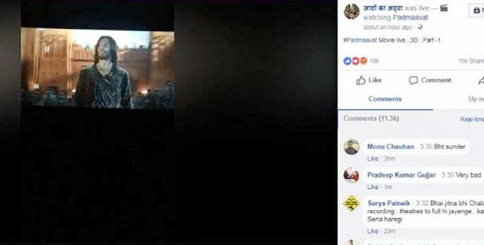 ಫೇಸ್‌ಬುಕ್‌ ಪುಟದಲ್ಲಿನೇರವಾಗಿ ಪ್ರದರ್ಶನಗೊಂಡ ‘ಪದ್ಮಾವತ್‌’ ಚಿತ್ರ; 15 ಸಾವಿರಕ್ಕೂ ಹೆಚ್ಚು ಮಂದಿ ಹಂಚಿಕೆ