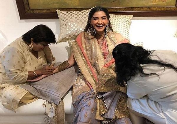 ಮುಂಗೈ, ಪಾದದ ಮೇಲೆ ಮೆಹಂದಿ ಚಿತ್ತಾರ ಬಿಡಿಸಿಕೊಂಡಿರುವ ಸೋನಂ, ಭಾವಿ ಪತಿ ಆನಂದ್ ಜೊತೆಗೆ ನಗುನಗುತ್ತಾ ಇರುವ ಚಿತ್ರಗಳನ್ನು ಅಭಿಮಾನಿಗಳು ಮೆಚ್ಚಿಕೊಂಡಿದ್ದಾರೆ.