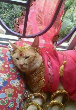 ಬೆಕ್ಕಿನ ಫೋಟೋವೊಂದನ್ನು ಟ್ವಿಟರ್ನಲ್ಲಿ ಹಂಚಿಕೊಂಡಿದ್ದರು ರವೀನಾ. ಆ ಬೆಕ್ಕಿಗೆ ಚಿನ್ನದ ಒಡವೆ ಎಲ್ಲಾ ಹಾಕಿ ಸಿಂಗರಿಸಲಾಗಿತ್ತು. ಇದೆಲ್ಲಾ ಸಾಲದು ಎಂಬಂತೆ ಅದರ ಹಣೆಗೆ ಸ್ಟಿಕ್ಕರ್ ಸಹ ಇಡಲಾಗಿತ್ತು. ಸ್ಕಾರ್ಪ್ ಒಂದನ್ನು ಸುತ್ತಿ ಮದುಮಗಳ ತರಹ ಅಲಂಕಾರ ಮಾಡಿದ್ದರು. ಈ ಫೋಟೋ ಜತೆಗೆ “ಈ ಅದೃಷ್ಟಶಾಲಿ ಬೆಕ್ಕು ಯಾರದು ಊಹಿಸಿ?” ಎಂದು ಹಾಕಿದ್ದರು.