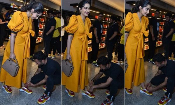 ಸೋನಂ ಕಾರ್ಯಕ್ರಮಕ್ಕೆ ಹಳದಿ ಬಣ್ಣದ ಉಡುಪು ಹಾಕಿ ಅದಕ್ಕೆ ಮ್ಯಾಚಿಂಗ್ ಶೂ ಹಾಕಿಕೊಂಡಿದ್ದರು. ಕಾರ್ಯಕ್ರಮದಲ್ಲಿ ಸೋನಂ ಅವರ ಶೂ ಲೇಸ್ ಓಪನ್ ಆಗಿದೆ. ಆಗ ಸೋನಂ ಪತಿ ಆನಂದ್ ಕೆಳಗೆ ಕುಳಿತುಕೊಂಡು ಸೋನಂ ಅವರ ಶೂ ಲೇಸ್ ಕಟ್ಟಿದ್ದಾರೆ.