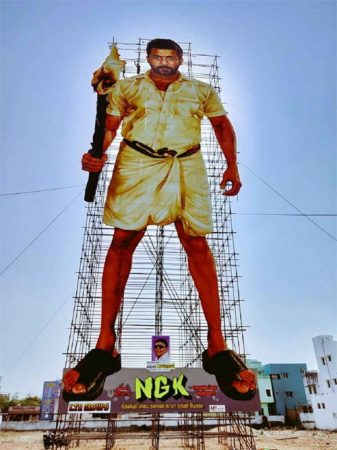 ಅಭಿಮಾನಿಗಳು ‘ನಂದ ಗೋಪಾಲನ್ ಕುಮಾರನ್'(ಎನ್​.ಜಿ.ಕೆ) ಸಂಭ್ರಮಕ್ಕಾಗಿ ಚಿತ್ರಮಂದಿರದ ಮುಂದೆ ನಟ ಸೂರ್ಯನ 215 ಅಡಿ ಎತ್ತರದ ಕಟೌಟ್ ನಿಲ್ಲಿಸಿದ್ದರು. ಇದು ವಿಶ್ವದ ಅತೀ ಎತ್ತರದ ಕಟೌಟ್ ಎಂಬ ಖ್ಯಾತಿಗೆ ಪಾತ್ರವಾಗಿತ್ತು. ಒಂದೆಡೆ ಚಿತ್ರ ಬಿಡುಗಡೆ ಖುಷಿ, ಮತ್ತೊಂದೆಡೆ ಕಟೌಟ್​ ದಾಖಲೆಯನ್ನು ಸಂಭ್ರಮಿಸಲು ಅಭಿಮಾನಿಗಳು ರೆಡಿಯಾಗಿದ್ದರು. ಇದೇ ಸಂದರ್ಭದಲ್ಲಿ ಸ್ಥಳಕ್ಕಾಗಮಿಸಿದ ಚೆನ್ನೈ ಪಾಲಿಕೆ ಅಧಿಕಾರಿಗಳು ಕಟೌಟ್​ ಅನ್ನು ತೆರವುಗೊಳಿಸಲು ಸೂಚಿಸಿದ್ದಾರೆ.