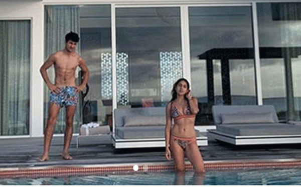 ಗುರುವಾರ ಸಾರಾ ಅಲಿ ಖಾನ್ ಇನ್ಸ್ಟಾದಲ್ಲಿ ತನ್ನ ತಮ್ಮ ಇಬ್ರಾಹಿಂ ಅಲಿ ಖಾನ್ ಜೊತೆಗಿರುವ ಫೋಟೋವನ್ನು ಹಂಚಿಕೊಂಡಿದ್ದರು. ಈ ಹಿಂದೆ ಸಾರಾ ಮಾಲ್ಡೀವ್ಸ್ ಗೆ ಹೋಗಿದ್ದಾಗ ಬಿಕಿನಿ ಧರಿಸಿ ಇಬ್ರಾಹಿಂ ಜೊತೆ ಫೋಟೋ ಕ್ಲಿಕ್ಕಿಸಿಕೊಂಡಿದ್ದರು. ಇದೇ ಫೋಟೋವನ್ನು ಸಾರಾ ಗುರುವಾರ ಇನ್ಸ್ಟಾದಲ್ಲಿ ಹಾಕಿ, ತನ್ನ ತಮ್ಮನಿಗೆ ಹುಟ್ಟುಹಬ್ಬದ ಶುಭ ಕೋರಿದ್ದರು.