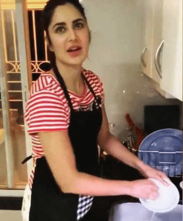 ಸ್ವಯಂ ನಿರ್ಬಂಧ ವಿಧಿಸಿಕೊಂಡಿರುವ ತಾರೆಗಳು ಈ ಸಂದರ್ಭದಲ್ಲಿ ಏನೆಲ್ಲಾ ಮಾಡುತ್ತಿದ್ದಾರೆ ಎಂಬುದನ್ನು ಸಾಮಾಜಿಕ ಮಾಧ್ಯಮಗಳಲ್ಲಿ ಹಂಚಿಕೊಳ್ಳುತ್ತಿದ್ದಾರೆ. ಕತ್ರಿನಾ ಕೈಫ್ ಸಹ ಪಾತ್ರೆ ತೊಳೆಯುತ್ತಿರುವ ವಿಡಿಯೋ ಒಂದನ್ನು ಹಂಚಿಕೊಂಡಿದ್ದಾರೆ. ಕೊರೊನಾ ಕಂಟಕದ ಹಿನ್ನೆಲೆಯಲ್ಲಿ ಮನೆ ಕೆಲಸದರೂ ಮನೆಯಲ್ಲೇ ಉಳಿದಿರುವ ಕಾರಣ ಕತ್ರಿನಾ ಪಾತ್ರೆ ತೊಳೆಯುವಂತಾಗಿದೆ.