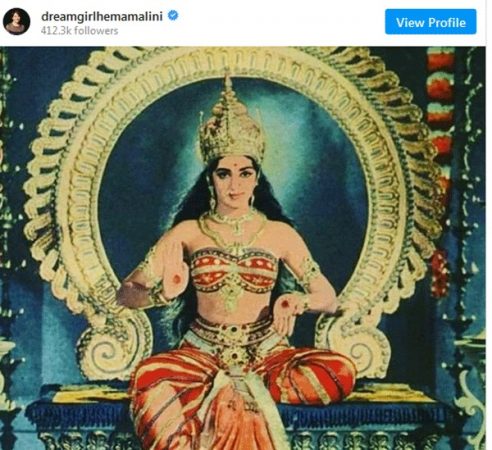 ಈ ಫೋಟೋದಲ್ಲಿ ಕಾಣುತ್ತಿರುವ ದೇವಿ ಚಿತ್ರದಲ್ಲಿರುವುದು ಕನಸಿನ ಕನ್ಯೆ ಹೇಮಮಾಲಿನಿ. ಹೌದು ತಮ್ಮ ಹಳೆಯ ಚಿತ್ರವೊಂದನ್ನು ಹೇಮಮಾಲಿನಿ ತಮ್ಮ ಸಾಮಾಜಿಕ ಜಾಲತಾಣದಲ್ಲಿ ಹಂಚಿಕೊಂಡಿದ್ದಾರೆ. ದೇವತೆಯಂತೆ ಅಲಂಕಾರಗೊಂಡಿರುವ ಅವರು ತಕ್ಷಣಕ್ಕೆ ಹೇಮಮಾಲಿನಿ ಎಂದು ಗುರುತಿಸುವುದಕ್ಕೆ ಸಾಧ್ಯವಿಲ್ಲ. ತಮ್ಮ ಸಿನಿಪಯಣ ಆರಂಭದ ಕಾಲದಲ್ಲಿ ತಮಿಳು ನಿಯತಕಾಲಿಕೆಗಾಗಿ ತೆಗೆಸಿದ ಫೋಟೋ ಇದಾಗಿದ್ದು, ಈ ಚಿತ್ರಕ್ಕಾಗಿ ನಾನು ಸಾಕಷ್ಟು ಹುಡುಕಾಡಿದ್ದೆ ಎಂದು ಅವರು ತಿಳಿಸಿದ್ದಾರೆ. ಈ ಫೋಟೋ ತೆಗೆಸಿಕೊಳ್ಳುವಾಗ ನಟಿ ಹೇಮಾಮಾಲಿನಿಗೆ ಇನ್ನು 14 ವರ್ಷವಂತೆ. ಅಂದ ಹಾಗೇ ತಮ್ಮ ಜೀವನ ಚರಿತ್ರೆಯ ಪುಸ್ತಕಕ್ಕಾಗಿ ನಟಿ ಈ ಪೋಟೋಗಾಗಿ ಸಾಕಷ್ಟು ಹುಡುಕಾಡಿದ್ದೆ ಎಂದು ತಿಳಿಸಿದ್ದಾರೆ.