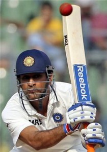 MS Dhoni hits the winning boundary that seals the fate of the Mohali Test in India’s favour. Three consecutive boundaries off Starc took India to 136/4 as they won the Test and took 3-0 lead in the four-match series.