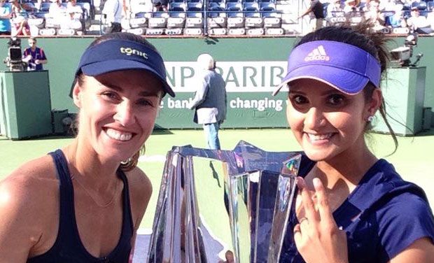 New Delhi: Indian tennis sensation Sania Mirza began her alliance with Swiss great Martina Hingis on a winning note as the two defeated Ekaterina Makarova and Elena Vesnina to clinch the BNP Paribas Open doubles title.