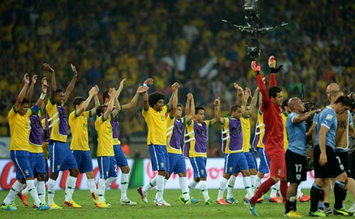 Belo Horizonte, Brazil: A towering Paulinho header saw Brazil edge Uruguay 2-1 on Wednesday in an ill-tempered Confederations Cup semi-final in Belo Horizonte to set up a final with either world champions Spain or Italy.