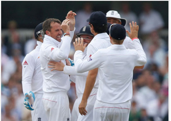 But with just three balls left in the day’s play, off-spinner Graeme Swann had Pattinson, who had frustrated England with the bat in their 14-run first Test win at Trent Bridge, lbw for 35 to the acclaim of a capacity and sun-drenched crowd.