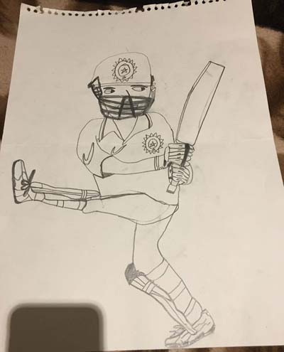 Pic 1 is a sketch of @msdhoni made by my elder son Aaryavir .Even in this sketch,Maahi maar raha hai. #JaiNataraj