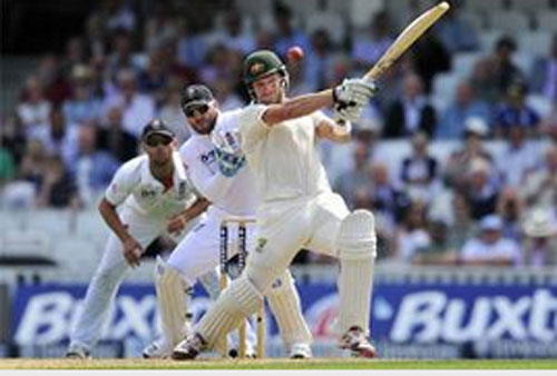 England took the second new ball and finally made the breakthrough when Watson pulled a short ball from Broad to deep backward square leg where Kevin Pietersen held a superb diving catch.