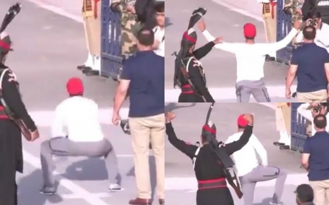 Hasan Ali being Hasan Ali during the flag-lowering ceremony at the Wagah border pic.twitter.com/sQuiwthVLb