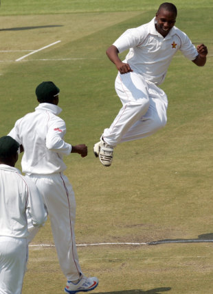 This was supposed to be the big challenge for Zimbabwe – could their bowlers keep the pressure on when the conditions eased out? They didn’t have to, as Misbah attempted one of those occasional, unpredictable big hits over the leg side and miscued to short midwicket. Prosper Utseya had even more to celebrate soon after, as Asad Shafiq also tried a wild slog and ended up inside-edging it to leg slip for 4.