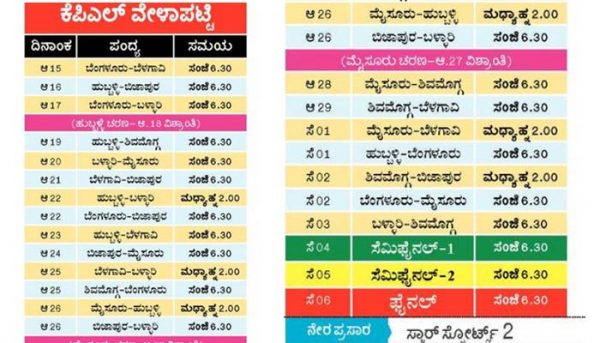 ಐಪಿಎಲ್ ಮಾದರಿಯ ಸ್ಥಳೀಯ ಟಿ20 ಪಂದ್ಯಾವಳಿ ಕರ್ನಾಟಕ ಪ್ರೀಮಿಯರ್ ಲೀಗ್’ನ ಏಳನೇ ಆವೃತ್ತಿಗೆ ಇಂದು ಚಾಲನೆ ದೊರಕಲಿದೆ. ಬೆಂಗಳೂರು ಚಿನ್ನಸ್ವಾಮಿ ಕ್ರೀಡಾಂಗಣದಲ್ಲಿ ಉದ್ಘಾಟನಾ ಪಂದ್ಯ ನಡೆಯಲಿದ್ದು, ಹಾಲಿಚಾಂಪಿಯನ್ ಬೆಳಗಾವಿ ಪ್ಯಾಂಥರ್ಸ್ ಹಾಗೂ ಬೆಂಗಳೂರು ಬ್ಲಾಸ್ಟರ್ಸ್ ತಂಡಗಳು ಮುಖಾಮುಖಿಯಾಗಲಿವೆ. ಒಟ್ಟು 24 ದಿನಗಳ ಕಾಲ ನಡೆಯಲಿರುವ ಕೆಪಿಎಲ್’ನ ಸಂಪೂರ್ಣ ವೇಳಾಪಟ್ಟಿ ಒಮ್ಮೆ ನೋಡಿ…