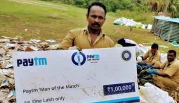 ವಿಂಡೀಸ್ ವಿರುದ್ಧದ 5ನೇ ಏಕದಿನ ಪಂದ್ಯದಲ್ಲಿ ಭಾರತ 9 ವಿಕೆಟ್ಗಳ ಭರ್ಜರಿ ಜಯ ಸಾಧಿಸಿತ್ತು. ಕೆರಿಬಿಯನ್ನರನ್ನು ಕೇವಲ 104 ರನ್ಗೆ ಆಲೌಟ್ ಮಾಡಿ ಭಾರತ ಸರಣಿಯನ್ನು ಕೈವಶ ಮಾಡಿಕೊಂಡಿತ್ತು. ವೆಸ್ಟ್ ಇಂಡೀಸ್ ತಂಡವನ್ನು ಅಲ್ಪ ಮೊತ್ತಕ್ಕೆ ಕಟ್ಟಿಹಾಕಲು ನೆರವಾಗಿದ್ದು ರವೀಂದ್ರ ಜಡೇಜಾ. 9.5 ಓವರ್ ಬೌಲಿಂಗ್ ಮಾಡಿದ ಜಡ್ಡು 1 ಮೇಡನ್ ಜೊತೆ ಕೇವಲ 34 ರನ್ ನೀಡಿ 4 ವಿಕೆಟ್ ಕಬಳಿಸಿದ್ದರು. ಇವರ ಈ ಸಾಧನೆಗೆ ಪೇಟಿಎಂ ಪ್ರಾಯೋಜಕತ್ವದಿಂದ 1 ಲಕ್ಷ ರೂ. ಗಳ ದೊಡ್ಡದಾದ ಡಮ್ಮಿ ಚೆಕ್ ನೀಡಿ ಪಂದ್ಯಶ್ರೇಷ್ಠ ಪ್ರಶಸ್ತಿ ನೀಡಲಾಗಿತ್ತು.