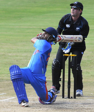 The required rate was touching seven at that stage, before the spinners allowed India back into the chase. Menaria clubbed three sixes and a four off a wayward over from legspinner Todd Astle and Jadhav hit two sixes and two fours off the other legspinner Ish Sodhi as 66 runs came in six overs. Menaria needed only 26 balls for his fifty, while Jadhav was a bit more watchful, taking 53 deliveries.