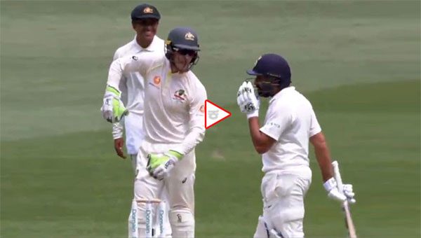 ಮೆಲ್ಬೋರ್ನ್ ಕ್ರಿಕೆಟ್ ಕ್ರೀಡಾಂಗಣದಲ್ಲಿ ನಡೆಯುತ್ತಿರುವ 3ನೇ ಟೆಸ್ಟ್ ಪಂದ್ಯದ 2ನೇ ದಿನದಾಟದ ವೇಳೆ ರೋಹಿತ್ ಶರ್ಮಾ ರನ್ನು ಆಸಿಸ್ ನಾಯಕ ಟಿಮ್ ಪೈನೆ ಕಿಚಾಯಿಸಿದರು. ರೋಹಿತ್ ಬ್ಯಾಟಿಂಗ್ ಮಾಡುತ್ತಿದ್ದಾಗ ಐಪಿಎಲ್ ಟೂರ್ನಿಯ ಕುರಿತು ಮಾತನಾಡಿದ ಪೈನೆ, ರೋಹಿತ್ ಎಂಸಿಜಿಯಲ್ಲಿ ಸಿಕ್ಸರ್ ಬಾರಿಸಿದರೆ ನಾನು ಮುಂಬೈ ಇಂಡಿಯನ್ಸ್ ತಂಡಕ್ಕೆ ಸೇರಿಕೊಳ್ಳುತ್ತೇನೆ ಎಂದು ಹೇಳಿದರು. ಪೈನೆ ಮಾತು ಕೇಳಿದ ರೋಹಿತ್ ನಕ್ಕು ಸುಮ್ಮನಾದರು.
