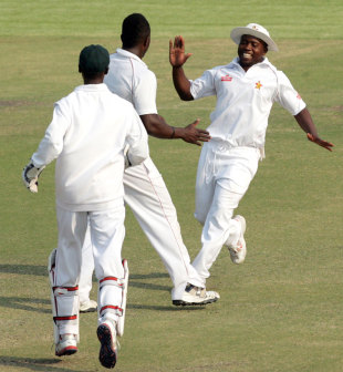 All this didn’t deter the first-innings half-centurion, Manzoor, who remained positive and kept attacking loose deliveries. The attitude seemed to rub onto Younis Khan too: they added they added 54 in 11 overs. Zimbabwe refused to let up, though. Utseya, despite being hit for two fours by Manzoor, troubled him with the dip he got. Soon after Manzoor reached his second fifty of the match, he fell to the dip. He pushed forward to defend, but the ball dropped shorter than he expected, and popped up for a bat-pad catch.