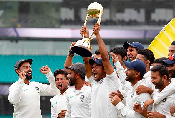 ಮಳೆ, ಮಂದಬೆಳಕಿನ ಅಡಚಣೆಯ ನಡುವೆ ಆತಿಥೇಯ ಆಸ್ಟ್ರೇಲಿಯಾ ತಂಡಕ್ಕೆ ತವರು ನೆಲದಲ್ಲಿಯೇ 31 ವರ್ಷಗಳ ಬಳಿಕ ಫಾಲೋ ಆನ್ ಹೇರಿದ್ದ ಭಾರತ ತಂಡ ಇದೀಗ ಆಸಿಸ್ ನೆಲದಲ್ಲಿ ಸರಣಿ ಜಯದ ಮೂಲಕ ಅಮೋಘ ಜಯ ಸಾಧಿಸಿದೆ. ಈ ಹಿಂದೆ ಅಡಿಲೇಡ್ ಮತ್ತು ಮೆಲ್ಬೋರ್ನ್ ಟೆಸ್ಟ್ ಪಂದ್ಯಗಳನ್ನು ಗೆದ್ದು ಸರಣಿ ಮೇಲೆ ಬಿಗಿ ಹಿಡಿತ ಸಾಧಿಸಿದ್ದ ಕೊಹ್ಲಿ ಪಡೆ ಅಂತಿಮ ಪಂದ್ಯದಲ್ಲಿ ಡ್ರಾ ಆಗುವುದರೊಂದಿಗೆ ಸರಣಿಯನ್ನು 2-1ರಲ್ಲಿ ತನ್ನ ಕೈ ವಶ ಮಾಡಿಕೊಂಡಿದೆ.