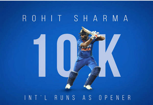 ಮುಂಬೈಕರ್ ರೋಹಿತ್ ಶರ್ಮಾ ಅಂತಾರಾಷ್ಟ್ರೀಯ ಕ್ರಿಕೆಟ್ ನಲ್ಲಿ ಆರಂಭಿಕನಾಗಿ ಹತ್ತು ಸಾವಿರ ರನ್ ಬಾರಿಸಿದ ಸಾಧನೆ ಮಾಡಿದರು. ನ್ಯೂಜಿಲ್ಯಾಂಡ್ ವಿರುದ್ಧದ ಮೂರನೆ ಟಿ ಟ್ವೆಂಟಿ ಪಂದ್ಯದಲ್ಲಿ ಶರ್ಮಾ ಈ ದಾಖಲೆ ಬರೆದರು. ಬುಧವಾರದ ಪಂದ್ಯದಲ್ಲಿ 40 ಎಸೆತಗಳಲ್ಲಿ 65 ರನ್ ಬಾರಿಸಿದ ರೋಹಿತ್ ಆರಂಭಿಕನಾಗಿ ಈ ದಾಖಲೆ ಬರೆದ ನಾಲ್ಕನೇ ಭಾರತದ ಆರಂಭಿಕ ಎಂದೆನಿಸಿದರು.