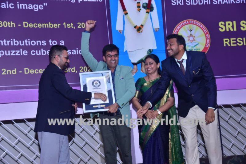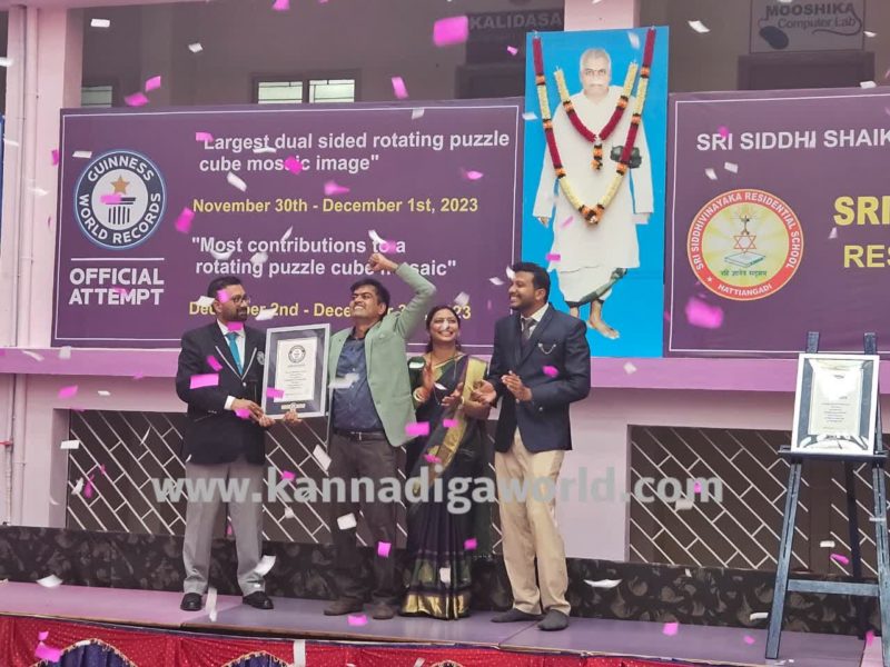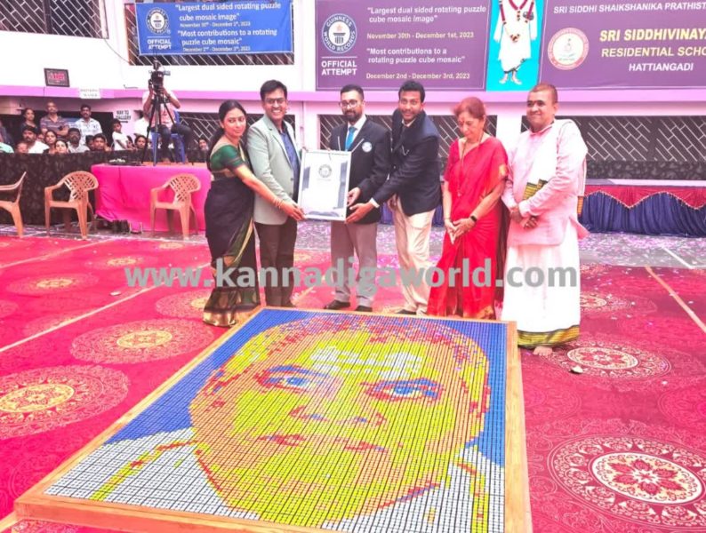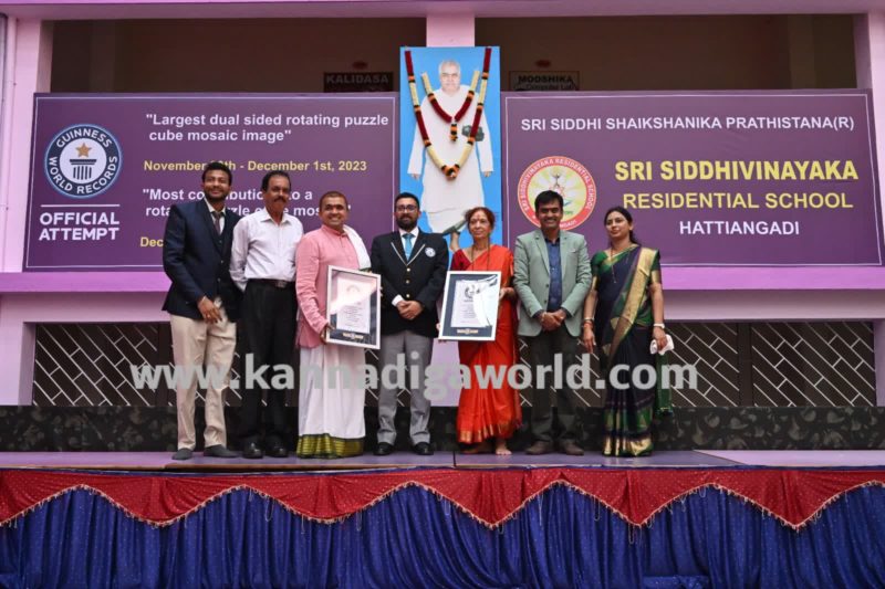 ಪ್ರಸ್ತುತ ಗಿನ್ನಿಸ್ ದಾಖಲೆಯಲ್ಲಿ ಇರುವ ಅತೀ ಹೆಚ್ಚು ಜನರ ಪಾಲ್ಗೊಳ್ಳುವಿಕೆಯ ತಿರುಗುವ (ರೊಟೇಟಿಂಗ್) ಪಜಲ್ ಕ್ಯೂಬ್ ಮೊಸಾಯಿಕ್ ದಾಖಲೆಯನ್ನು ಮುರಿದು ಹೊಸ ದಾಖಲೆಯನ್ನು ಮಾಡುವ ಯತ್ನ ಭಾನುವಾರ ಮಧ್ಯಾಹ್ನದ ವೇಳೆ ಸುಖಾಂತ್ಯವಾಗಿತ್ತು. ನಿರೀಕ್ಷೆಗೂ ಅಧಿಕ ವಿದ್ಯಾರ್ಥಿಗಳು ಛಲ ಸಾಧಿಸಿ ಮತ್ತೊಂದು ವಿಶ್ವ ದಾಖಲೆಗೆ ಮುನ್ನುಡಿ ಬರೆದರು. ಸದ್ಯ ಇರುವ ಗಿನ್ನೆಸ್ ದಾಖಲೆ ಬ್ರಿಟನ್ನ ಲಂಡನ್ನಲ್ಲಿ ರೂಬಿಕ್ಸ್ ಬ್ರಾಂಡ್ ಲಿಮಿಟೆಡ್ 308 ಜನರ ಪಾಲ್ಗೊಳ್ಳುವಿಕೆಯಲ್ಲಿ ರಚಿಸಿದ ಚಿತ್ರವಿದ್ದು 1228 ಪಾಲ್ಗೊಳ್ಳುವಿಕೆಯಲ್ಲಿ ರೊಟೇಟಿಂಗ್ ಫಸಲ್ ಕ್ಯೂಬ್ ಮೊಸಾಯಿಕ್ನಲ್ಲಿ ಸಿದ್ದಿವಿನಾಯಕ ವಸತಿ ಶಾಲೆಯ ಸಂಸ್ಥಾಪಕರಾದ ವೇದಮೂರ್ತಿ ಎಚ್.ರಾಮಚಂದ್ರ ಭಟ್ ಅವರ ಚಿತ್ರವನ್ನು ರಚಿಸಲಾಗಿದ್ದು ನಾಲ್ಕು ಪಟ್ಟು ಅಂತರದಲ್ಲಿ ಹಳೆ ದಾಖಲೆ ಮುರಿಯಲಾಗಿದೆ.
