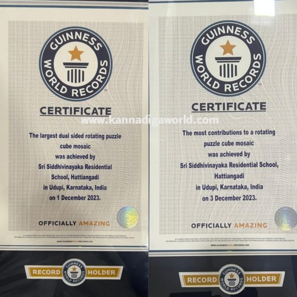 ಮೊದಲ ದಾಖಲೆ: ನ.30 ರಿಂದ ಆರಂಭಿಸಿದ 50 ವಿದ್ಯಾರ್ಥಿಗಳು 6 ಸಾವಿರ ರೂಬಿಕ್ ಕ್ಯೂಬ್ನಿಂದ 19.198 ಚ.ಮೀ ವಿಸ್ತಿರ್ಣದಲ್ಲಿ ಒಂದು ಬದಿಯಲ್ಲಿ ದೇಶದ ಹಾಕಿ ಮಾಂತ್ರಿಕ ಮೇಜರ್ ಧ್ಯಾನಚಂದ್ ಹಾಗೂ ಇನ್ನೊಂದು ಬದಿಯಲ್ಲಿ ಅಂತರಾಷ್ಟ್ರೀಯ ಬ್ಯಾಡ್ಮಿಂಟನ್ ಆಟಗಾರ್ತಿ ಪಿ.ವಿ.ಸಿಂಧು ಅವರ ಭಾವಚಿತ್ರವನ್ನು ಅನಾವರಣಗೊಳಿಸುವ ಮೂಲಕ ಈ ಹಿಂದಿನ ಕಝಾಕಿಸ್ತಾನದ ಝಿಂಗಿಸ್ ಐಟ್ಜಾನೋವ್ 5100 ಕ್ಯೂಬ್ ಗಳೊಂದಿಗೆ ನಿರ್ಮಿಸಿದ್ದ 15.878 ಚ. ಮೀಟರ್ ವಿಸ್ತಿರ್ಣದ ದಾಖಲೆಯನ್ನು ಮುರಿದು ಡ್ಯುಯಲ್ ಸೈಡ್ ರೊಟೇಟಿಂಗ್’ನಲ್ಲಿ ನೂತನ ಗಿನ್ನಿಸ್ ದಾಖಲೆ ಮಾಡಿದ್ದಾರೆ. ಇಲ್ಲಿ ಚಿತ್ರದ ಅಳತೆ ಮಾತ್ರ ಪರಿಗಣನೆಯಾಗುತ್ತದೆ. ತೆಗೆದುಕೊಂಡ ಸಮಯ, ಎಷ್ಟು ಮಂದಿ ಇದ್ದರು ಎಂಬುದು ಗಣನೆಯಾಗಿಲ್ಲ.