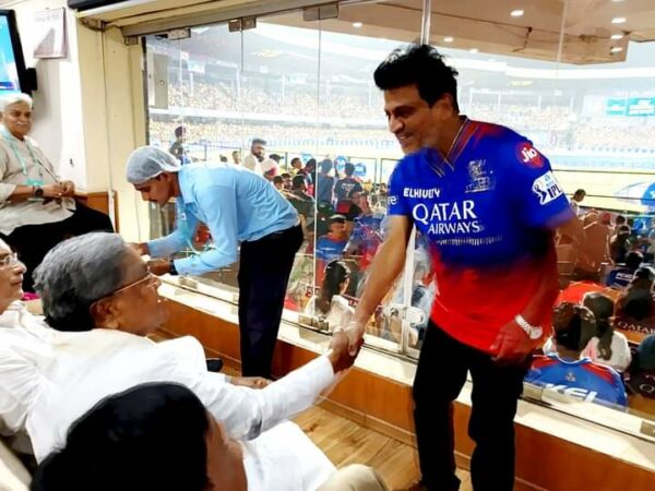 ಆರ್.ಸಿ.ಬಿ ತಂಡಕ್ಕೆ ಬೆಂಬಲನೀಡುವ ಸಲುವಾಗಿ ಕ್ರೀಡಾಂಗಣಕ್ಕೆ ಜೆರ್ಸಿ ತೊಟ್ಟು ಆಗಮಿಸಿದ ನಟ ಡಾ. ಶಿವರಾಜಕುಮಾರ್ ಅವರು ಪದ್ಯಾಂಟ ವೀಕ್ಷಿಸಿದರು. ಇದೇ ಸಮಯ ಸಿಎಂ ಸಿದ್ದರಾಮಯ್ಯ ಮ್ಯಾಚ್ ವೀಕ್ಷಿಸುತ್ತಿದ್ದ ಸ್ಥಳಕ್ಕೆ ಆಗಮಿಸಿ ಶೇಕ್ ಹ್ಯಾಂಡ್ ಮಾಡಿದರು.