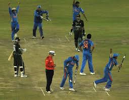 Only 31 runs came in the first ten overs, with Martin Guptill (16 runs, 35 balls, two fours) falling soon after, caught by Shami off Varun Aaron in the 13th over. The bowler heaved a sigh of relief as he had earlier dropped Guptill when he was on 9.