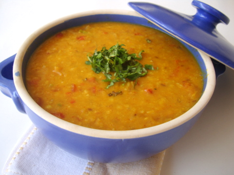 Serve this PanchRatan Dal with Naan, Chapatis, and Rice.