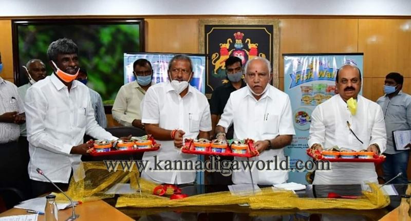 ಬೆಂಗಳೂರು: ಕರ್ನಾಟಕ ಮೀನುಗಾರಿಕೆ ಅಭಿವೃದ್ಧಿ ನಿಗಮ ನಿಯಮಿತ ವತಿಯಿಂದ ಮೀನಿನ ಖಾದ್ಯ ಪ್ರಿಯರಿಗಾಗಿ ಇದೇ ಮೊದಲ ಬಾರಿಗೆ ಮೀನಿನ ಚಿಪ್ಸ್, ಮೀನಿನಿಂದ ತಯಾರಿಸುವ ಮಸಾಲೆ ಪದಾರ್ಥಗಳನ್ನು ಮುಖ್ಯಮಂತ್ರಿ ಯಡಿಯೂರಪ್ಪ ಲೋಕಾರ್ಪಣೆ ಮಾಡಿದರು. ಗೃಹ ಸಚಿವ ಬಸವರಾಜ ಬೊಮ್ಮಾಯಿ, ನಗರಾಭಿವೃದ್ಧಿ ಸಚಿವ ಬೈರತಿ ಬಸವರಾಜ್, ಕರ್ನಾಟಕ ಮೀನುಗಾರಿಕೆ ಅಭಿವೃದ್ಧಿ ನಿಗಮದ ಎಂ.ಡಿ. ಎಮ್.ಎಲ್. ದೊಡ್ಡಮನಿ, ಮತ್ಸ್ಯ ಬಂಧನ ಸಂಸ್ಥೆಯ ನಿರ್ದೇಶಕರಾದ ಗೋವಿಂದ ಬಾಬು ಪೂಜಾರಿ, ಅರುಣ್ ಧನಪಾಲ್ ಈ ಸಂದರ್ಭ ಇದ್ದರು.