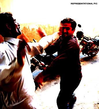 The victim says the two accused thrashed him without any provocation and also damaged his car. He has also blamed the police of trying to hush up the issue