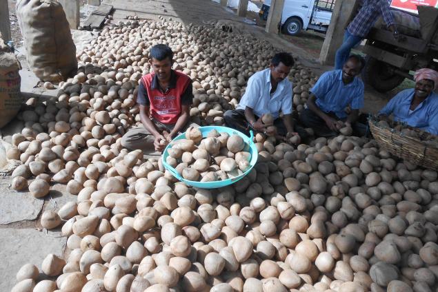 The growers have to register their names in advance and copra is purchased on a first-come, first-served basis. But, there have been allegations from farmers that this system is being violated.