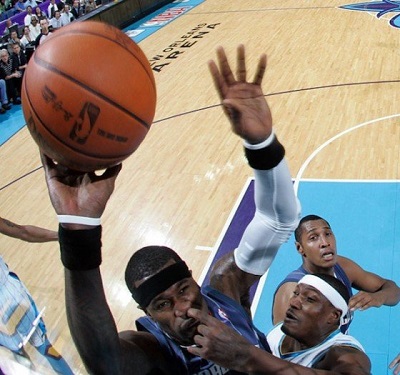 That’s not the basket you should be blocking there. Pretty sure he wasn’t planning on putting the basketball up his nose, so maybe you should try blocking where the actual basket is. You know the big round one that can actually fit a basketball. ­Although he doesn’t seem too upset about where his finger ended up.