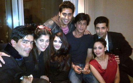 Filmmaker Karan Johar had tweeted a cozy shot of Ash, SRK, Gauri Khan, Abhishek Bachchan, Sabina Khan, Manish Malhotra and himself, living it up in Vancouver.
