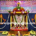 A flower decked special sanctum of Lord Vishwakarma, aesthetically decorated by Shri Ashok Purohith was a treat to watch during Mahapuja managalarathi and had taken the devotees to a divine world. After distribution of prasadam,sumptuous food annasantharpane-, sponsored by Smt. & Shri Shridhar Achar,served much to the satisfaction of all the devotees.
