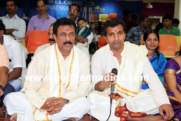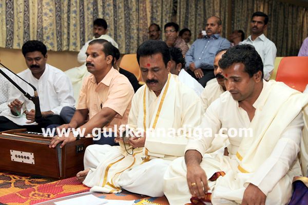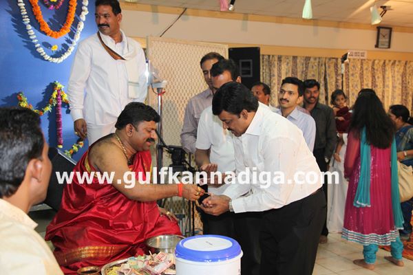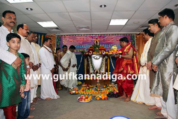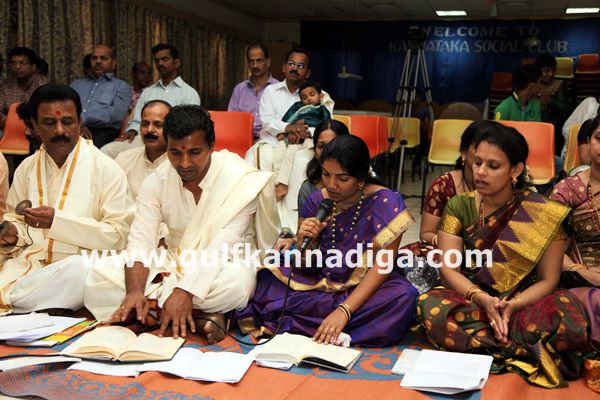 The morning session started by Kalashaprathishta at 10 AM by none other than renowned astrologer, vastu expert and gemstone specialist Shri Ashok Purohith, flown in from Mumbai; ably assisted by Shri Ravindra Acharya from Saudi Arabia. Smt.& Shri Shridhar Achar presided as pooja couple for the day’s proceedings.