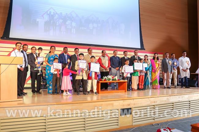 At the auspicious moment, Rajyotsava program started with singing of Kuwait and Indian National anthems which was followed by Karnataka state song. Koota’s president Sri C.A. Prashantha Shetty, chief guest Kalasree Y.K Muddukrishna, guest of honor Kalasree Nagara Srinivas Udupa, event sponsor Good Earth’s Managing Director Mr. Stanley George with the other members of the Executive committee, Vice President Rajesh Vittal PMP, Treasurer Dr. Shashikiran G. Prabhu, Secretary PrabhuAchar with family members of Executive committee declared open the Rajyotsava program by lighting sacred lamp. Cultural Committee convener Smt.Gayatri Ramesh along with co-convener Smt.SpoorthyShenoy Kamath welcomed the guests and the members. The tiny tots of KKK started with offering obescience to Lord Ganesha, remover of obstacles in the form of dance number.