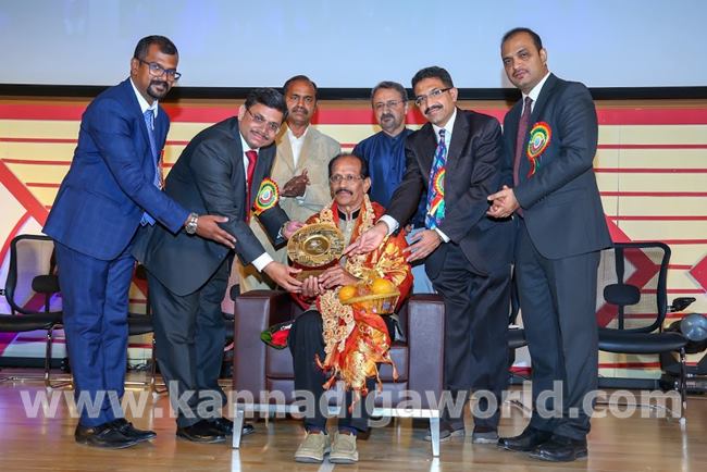 During the stage event, Koota’s president Sri. C.A. Prashantha Shetty in his speech enumerated the activities of the Koota and thanked all the sponsors who helped to make this Rajyotsava program possible. All the sponsors were given a memento as a token of remembrance. To remember the event, a souvenir was released by the chief guest. The “Chigura Balli” team which imparts Kannada tutoring to our children announced their new classes open for Koota and as well as other children interested in learning Kannada. Marala Mallige team released the e-version of Marala Mallige. The invited guests from our Karnataka state Kalasree Y K Muddukrishna & Kalasree Nagara Srinivas Udupa were honored with a shawl and were given mementos as token of remembrance. The chief guest Kalasree Y K Muddukrishna was enamored by the hospitality of the Koota and was all praise for the children of the Koota whose cultural display was comparable any international standard. There was a raffle draw conducted and various valuable prizes were given away.