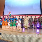 After the stage event the finale was a value based theme dance cum skit “Sainikarige Salam” which arrived like a lightening on the stage. All those brave soldiers who laid down their life for the country were very well depicted and earned the standing ovation from the audience. The Cultural committee convener Mrs.Gayatri Ramesh and co-convener Mrs. SpoorthyShenoy Kamathhad very well directed the entire Rajyotsava Program. Dr.Azad Ismail Saheb, Sri. TharendraShettigar, Dr.Preeti Shetty and Sri. Vasuki helped in running the program smoothly. General secretary Mr. Prabhu Achar proposed vote of thanks.