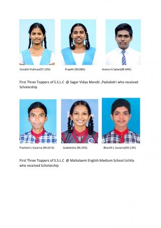 1) Mahalaksmi English Medium School, The names of the top 3 students as follows Prasheel L. Suvarna, Sudeeksha, Bavith L Suvaran Uchila 2) Sagar Vidya Mandir, Beach Road, Padubidri. The names of students as follows Unnathi H Puthran, Prapthi, Anshul A Salian.