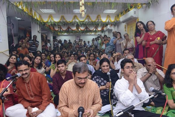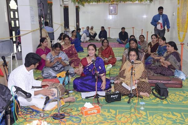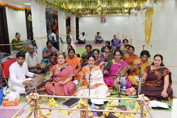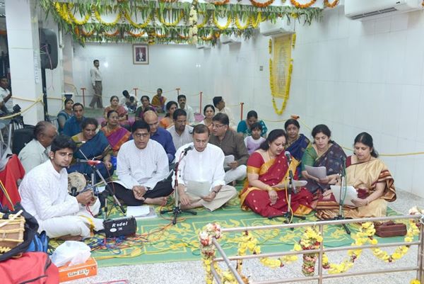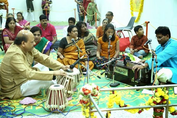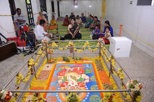 Popular bhajans like Prathama Namo Girijasuta, Nammamma Sharadhe, Ganapati Deva Teri Jai Jaikar, Ganapati Enna Paliso, Vande Omkara, Ganapana Poojeg Ulai Bale, Maheshwarana Suta Ganeshwara, Sharavu Mahaganapatiye, Dhimikita Dhimikita, Ghajanana Shree Ganaraya, Jai Jai Ganapati Jai Ganesh, Narada Muni Soor Det, Sharanu Sharuvayyo Gana Nayaka, were rendered and the session was concluded with mangala bhajan ‘Jaya Mangalam Nitya Shubha Mangalam. A special Pushparchana was conducted on the last day during which Karunakar Rao chanted the Shloka “Madukarata Modakam ……”