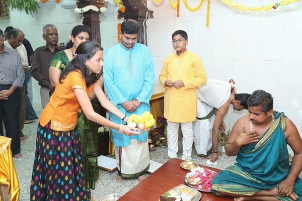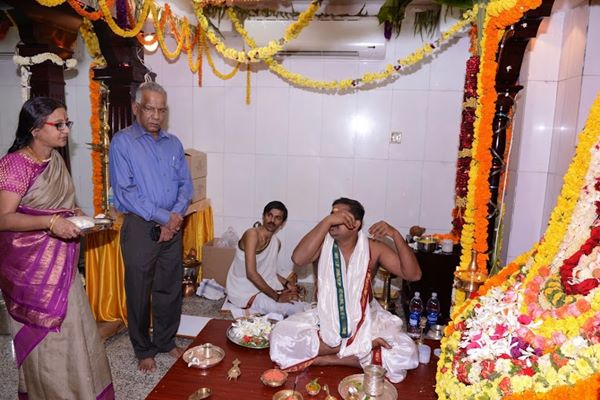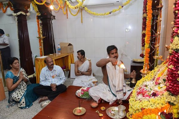 The Ganesh Chaturthi celebrations started with Pranapratishtapana, Panchamrita Abhisheka and Gana Homa on Monday, 9th September between 9.05 am and 11 a.m. As part of the celebrations, several other traditional rituals like Aarathi, Maha Pooja, Ranga Pooja, Vedic Chants, Ganapathi Sahasranamavali, Shukla Yajurveda Ghanam chanting were performed and variety of offerings like 108 Coconuts, Laddu, Chakkuli, Kajjaya, Modaka etc., were made to the Lord on all the three days. All the pooja rituals were performed by the main Archaka Shri Shankar Narayan Adiga (who was specially flown in from India), assisted by Shri Gurudas Pejathaya and a group of local Archakas.