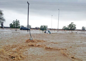 The entire area is now almost deserted since two overflowing wadis have cut off access to the roads. Several houses in low-lying areas have been inundated. House has been flooded. If it continues to rain, people will have to be moved to a shelter. Several cars being swept away in the wadis. So far, no causalities have been reported. Civil Defence officials, with the help of the ‘choppers,’ are braving the bad weather and are engaged in rescue operations.