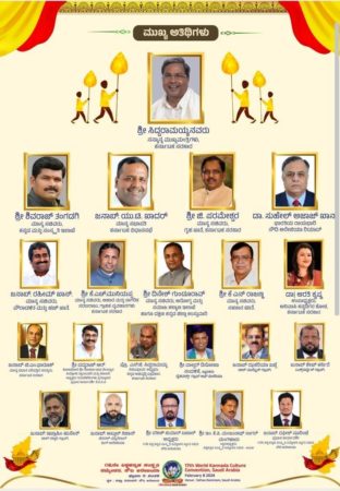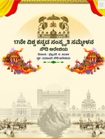 ವಿಶ್ವ ಕನ್ನಡ ಸಂಸ್ಕೃತಿ ಸಮ್ಮೇಳನ ಸಮಿತಿ ಮತ್ತು ಅನಿವಾಸಿ ಕನ್ನಡಿಗರ ವೇದಿಕೆ ಸೌದಿ ಅರೇಬಿಯ ಒಂದಗೂಡಿ ಮೊದಲ ಬಾರಿಗೆ ಸೌದಿ ಅರೇಬಿಯದ ದಮಾಮ್ ನಲ್ಲಿ ಫೆಬ್ರವರಿ 8 ರಂದು 17 ನೇ ವಿಶ್ವ ಕನ್ನಡ ಸಂಸ್ಕೃತಿ ಸಮ್ಮೇಳನ ನಡೆಯಲಿದ್ದು ಕರ್ನಾಟಕದ ಮುಖ್ಯಮಂತ್ರಿಗಳಾದ ಸಿದ್ದರಾಮಯ್ಯ, ಕನ್ನಡ ಮತ್ತು ಸಂಸ್ಕೃತಿ ಇಲಾಖೆ ಸಚಿವರಾದ ಶಿವರಾಜ ತಂಗಡಗಿ, ವಿಧಾನಸಭೆ ಸಭಾಪತಿಗಳಾದ ಯು.ಟಿ ಖಾದರ್, ಗೃಹಸಚಿವರಾದ ಡಾ.ಜಿ ಪರಮೇಶ್ವರ್, ಸೌದಿ ಅರೆಬಿಯಾ ರಿಯಾದ್ ಭಾರತೀಯ ರಾಯಭಾರಿಗಳಾದ ಡಾ. ಸುಹೇಲ್ ಅಜಾಜ್ ಖಾನ್, ಪೌರಾಡಳಿತ ಮತ್ತು ಹಜ್ ಖಾತೆ ಸಚಿವರಾದ ರಹೀಮ್ ಖಾನ್, ಆಹಾರ ಮತ್ತು ನಾಗರಿಕ ಸರಬರಾಜು ಇಲಾಖೆ ಸಚಿವರಾದ ಕೆ.ಎಚ್ ಮುನಿಯಪ್ಪ, ಆರೋಗ್ಯ ಮತ್ತು ಸಮಾಜ ಕಲ್ಯಾಣ ಇಲಾಖೆ ಸಚಿವರಾದ ದಿನೇಶ್ ಗುಂಡುರಾವ್, ಸಹಕಾರ ಖಾತೆ ಸಚಿವರಾದ ಕೆ.ಎನ್ ರಾಜಣ್ಣ, ಅನಿವಾಸಿ ಕನ್ನಡಿಗರ ಕೋಶದ ಉಪಾಧ್ಯಕ್ಷರಾದ ಡಾ. ಆರತಿಕೃಷ್ಣ, ವಿಧಾನಪರಿಷತ್ ಸದಸ್ಯರಾದ ಬಿಎಂ ಫಾರುಖ್, ಶ್ರೀ ಗೋಕರ್ಣನಾಥ ದೇವಸ್ಥಾನದ ಕೋಶಾಧಿಕಾರಿ ಪದ್ಮರಾಜ್ ಆರ್., ಕನ್ನಡ ಅಭಿವೃದ್ಧಿ ಪ್ರಾಧಿಕಾರದ ನಿಕಟ ಪೂರ್ವ ಅಧ್ಯಕ್ಷ ಪ್ರೋ.ಎಸ್.ಜಿ ಸಿದ್ದರಾಮಯ್ಯ, ಡೈಜಿವರ್ಡ್ ಗ್ರೂಫ್ ಆಪ್ ಮೆಡಿಯಾದ ವಾಲ್ಟರ್ ನಂದಳಿಕೆ, ಅಲ್ ಮುಝೈನ್ ಗ್ರೂಫ್ನ ಜಕರಿಯಾ ಬಜ್ಪೆ, ಎಕ್ಸ್ಪರ್ಟೈಸ್ ಗ್ರೂಪ್ನ ಶೇಖ್ ಕರ್ನಿರೆ, ಅಲ್ ರಕ್ವಾನಿ ಗ್ರೂಫ್ನ ಇಬ್ರಾಹಿಂ ಹುಸೇನ್, ಮಿಗ್ ಅರೆಬಿಯಾ ಜನರಲ್ ಮ್ಯಾನೇಜರ್ ಅಬ್ದುಲ್ ನಿಶಾನ್, ಸೌದಿ ಅರೆಬಿಯಾ 17ನೇ ವಿಶ್ವ ಕನ್ನಡ ಸಂಸ್ಕೃತಿ ಸಮ್ಮೇಳನದ ಸ್ವಾಗತ ಸಮಿತಿ ಅಧ್ಯಕ್ಷರಾದ ಸತೀಶ್ ಕುಮಾರ್ ಬಜಾಲ್, ವಿಶ್ವ ಕನ್ನಡ ಸಂಸ್ಕೃತಿ ಸಮ್ಮೇಳನ-2004 ಸ್ಥಾಪಕಧ್ಯಕ್ಷ ಇಂ. ಕೆ.ಪಿ. ಮಂಜುನಾಥ್ ಸಾಗರ್ ಮಂಗಳೂರು, 17ನೇ ವಿಶ್ವ ಕನ್ನಡ ಸಂಸ್ಕೃತಿ ಸಮ್ಮೇಳನದ ಸ್ವಾಗತ ಸಮಿತಿ ಪ್ರಧಾನ ಕಾರ್ಯದರ್ಶಿ ರಫಿಕ್ ಸೂರಿಂಜೆ ಉಪಸ್ಥಿತರಿರಲಿದ್ದಾರೆ ಎಂದು ಸಮಿತಿ ತಿಳಿಸಿದೆ.