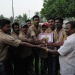 Post lunch session continued with cricket match with the semifinals between the qualified teams. On the other side sports for men and women were held under the various sections like sack race, relay race, 3-leg race, tug-of war, hopping race etc. All the members participated in the sports and enjoyed every moment without considering the age limit. Final men’s cricket match was followed by evening snacks break; the final match between Al –Quoz Friends Vs JVC Jasco really brought the IPL look to the audience. Pravin Acharya of Al Quoz Friends bagged both Man of the Match and Series for his outstanding performances. Sujeeth also got a special prize for his all-round performances in Cricket. Pavithra Acharya and Malathi Ragu Acharya were awarded for their best performance in Throw ball.
