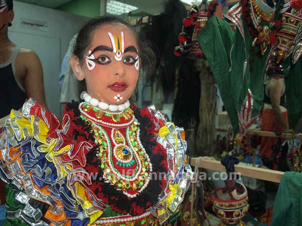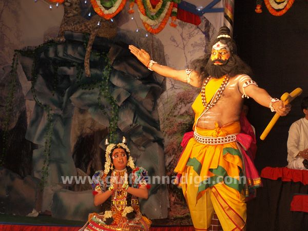 The highlight of the day was an immaculate, extra-ordinary, sizzling performance by small child artist Sharanya Shastri as Nandini.For little girl Sharanya, it was a fete to perform on dais like any other professional artists in front of thousands of spectators.Whether it is a dance or conversations, or expression, there was no match for her and befittingly justified her role of” Nandini “and has been well accepted and complimented by the dignitaries, guests and audience in the hall.