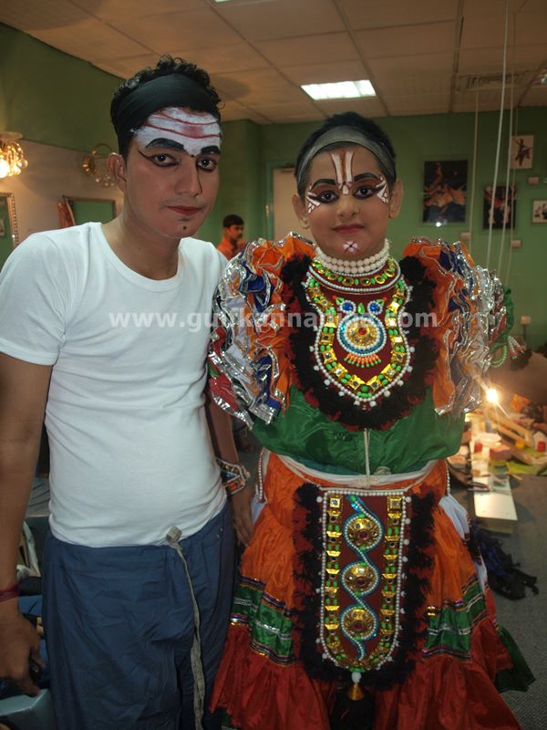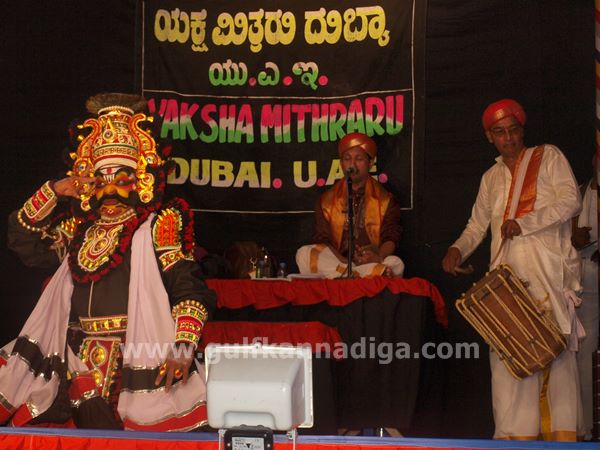 Playback musicians like P V Paramesh and Venkatesh Shastri were on a tabor (a kind of drum used by an accompanist in concert=Maddale) ,Mohan Shettigar Mijar on Chende,Bottikere Purushotham Poonja and current Star Bhagavatha Sathish shetty Patla were on Bhaagavathige.Sathish Patla with his golden, melodious and beautiful voice has by completely mesmerizing the audience, created a world of Yakshaloka in desert land.