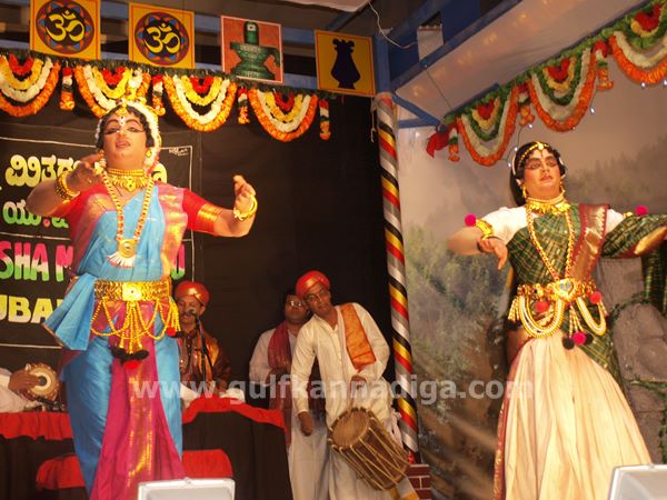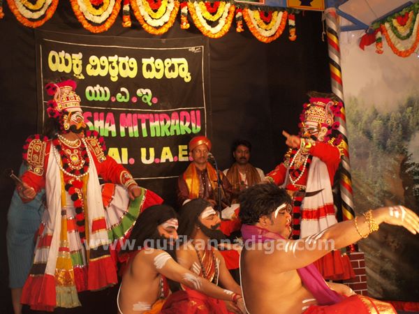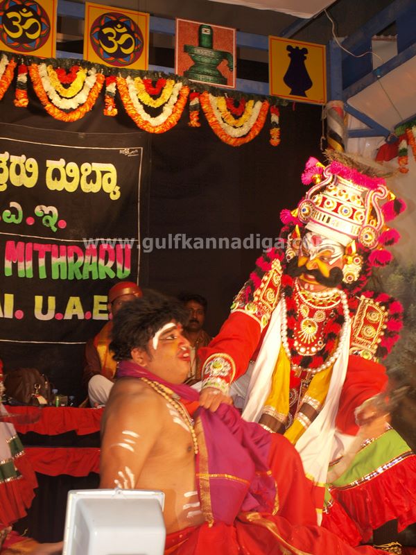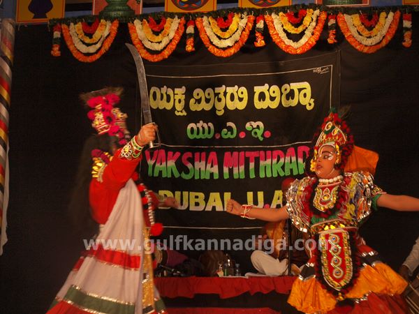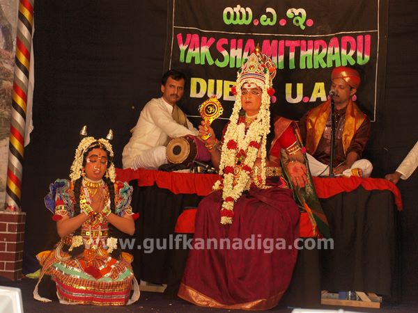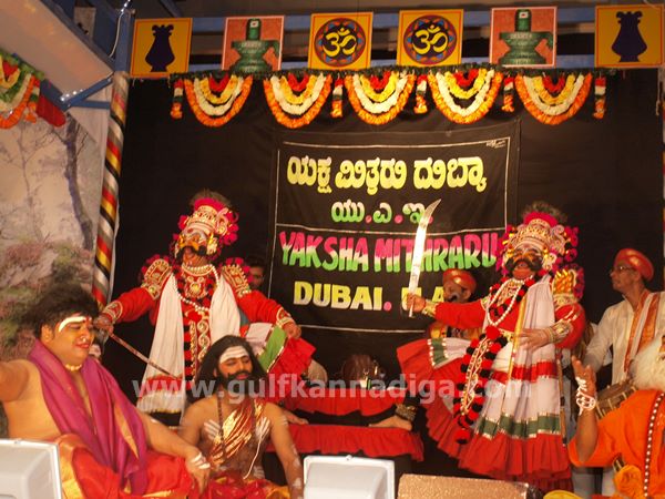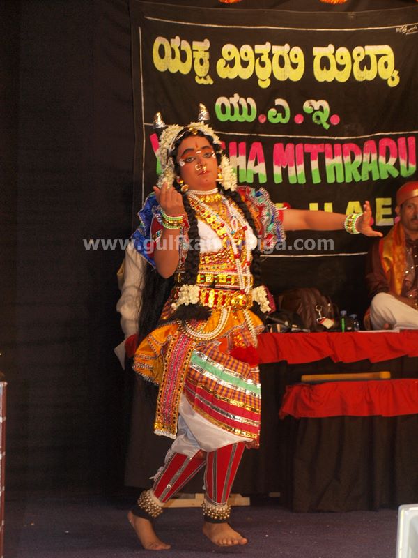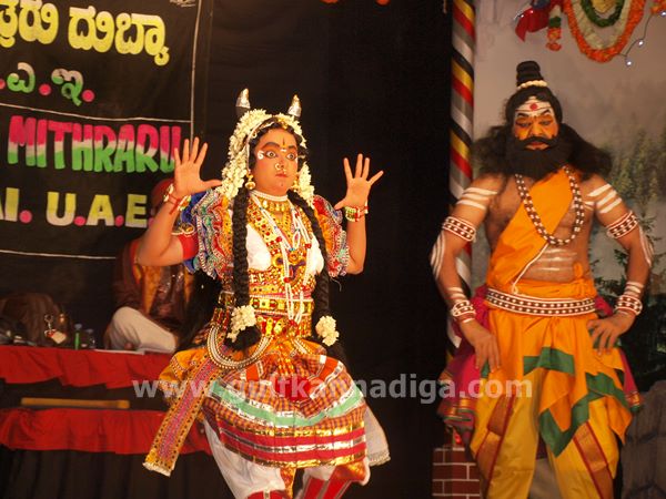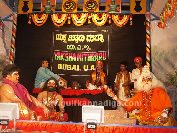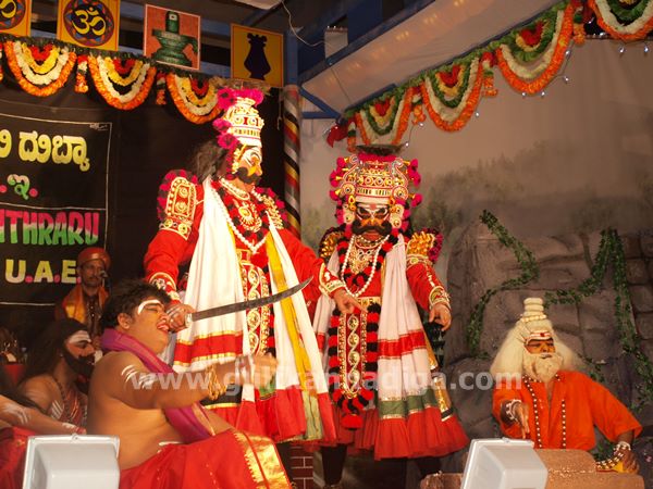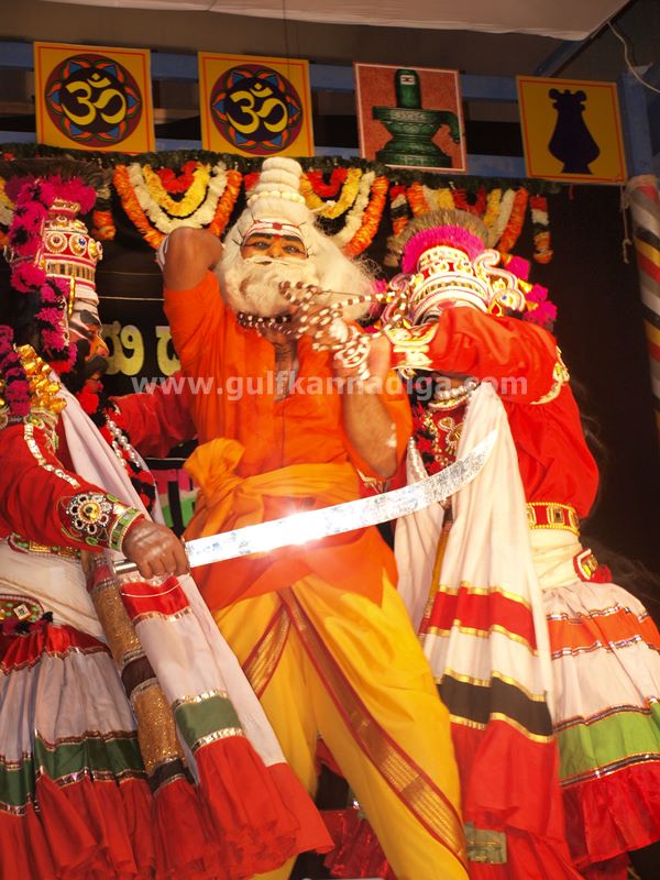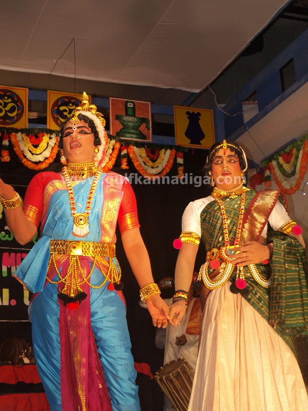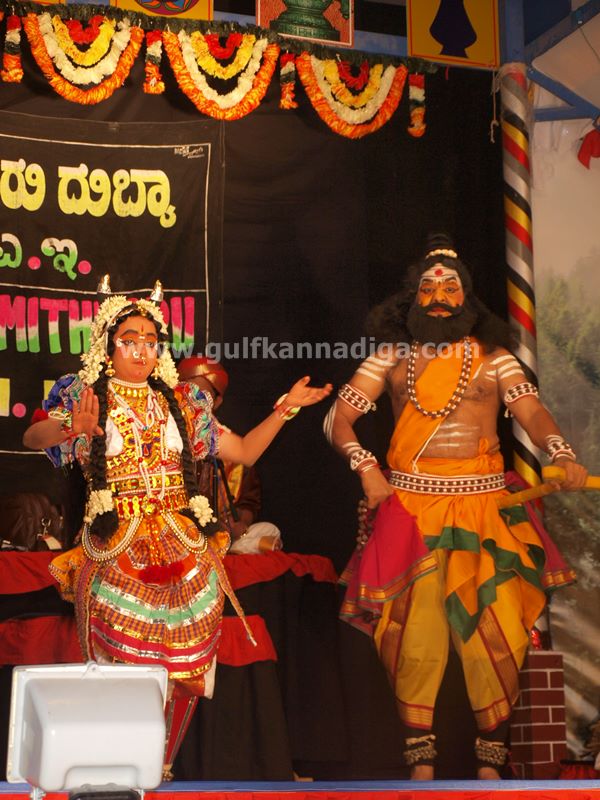 If the programme was commenced with the traditional Devendra royal durbar, Sugandhi/Yashomathi has been enacted by Shree Deepak Rao Pejavara, who has been especially flown into Dubai as a guest artist for the occasion from India. The Versatile Deepak Rao with his brilliant act, varied actions, expressions, dance and flawless, continuous flow of deliberations lured the hearts of thousands of expatriate community from the coastal region in particular and Kannadigas in general gathered in the auditorium.